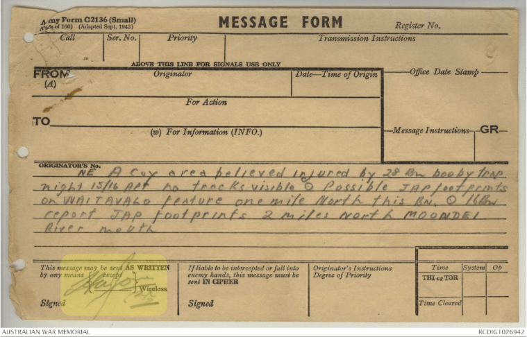 The Australian War Memorial contains valuable information concerning the efforts of the particular patrol that found wreckage but also the information contained in the records offers a surrounding view of the events in New Britain at that time of crisis during World War Two. The AWM records provided invaluable assistance.