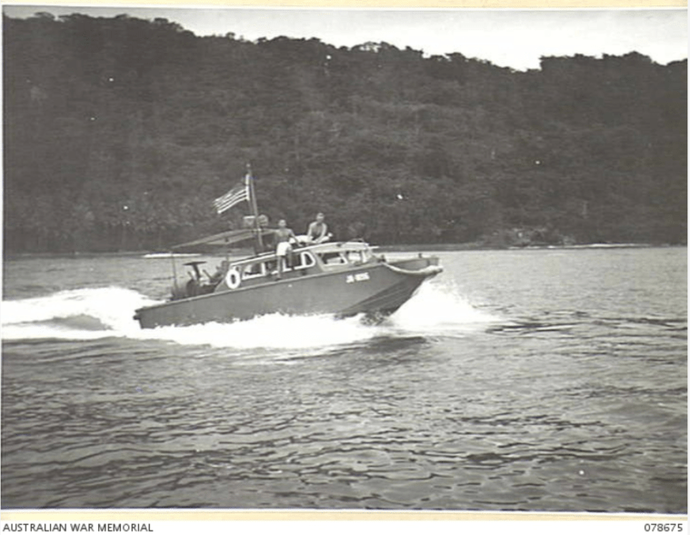 In the second possibility, the two officers may have come up from Jacquinot Bay on a regular re-supply run and take the next scheduled returning barge back to their unit. However the 594th “unofficial history” in my possession carries the statement that their barges (LCM’s) left Wide Bay on the 15th April for the “last” time as the Australian 41st Landing Craft Unit (LCU) took over from the American 594th. Of note, the 594th had three “fast” sea craft called J-Boats and there was also mention of a “Picket Boat” which was capable of over 20 knots speed.