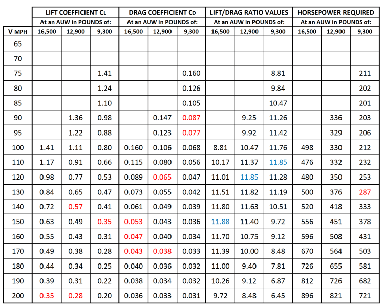 | H.P. Required | The total H.P. required to overcome the aircraft aerodynamic drag at a given speed |